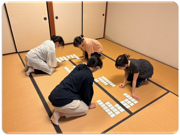 みんなで楽しく活動を行っており、競技未経験の方でも楽しめます。はじめは札を覚えるのが大変かもしれませんが、きっと競技かるたの楽しさに魅了されます!ぜひ一緒に活動しましょう!